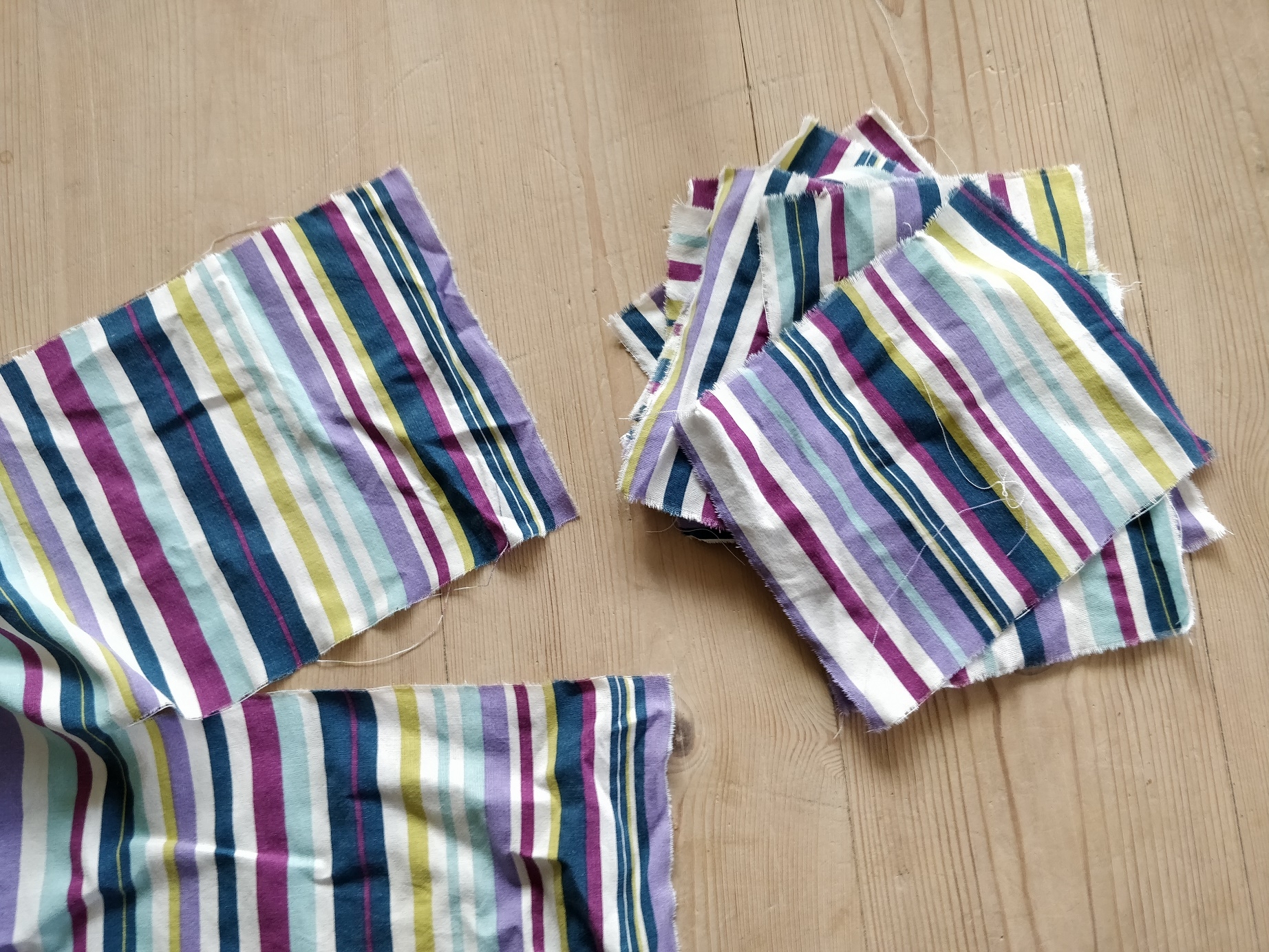 Egentlig startede det med kludene, fordi vi skulle på ferie, og min mor foreslog os at lave hagesmække og klude af gammelt stof. Så kunne vi bare smide dem ud, i stedet for at pakke noget beskidt fra hele ugen i en taske og fragte med hjem igen. Det var så smart, at vi er blevet ved… Ej hagesmække bruger vi nu nogen, der kan vaskes af. 🙂