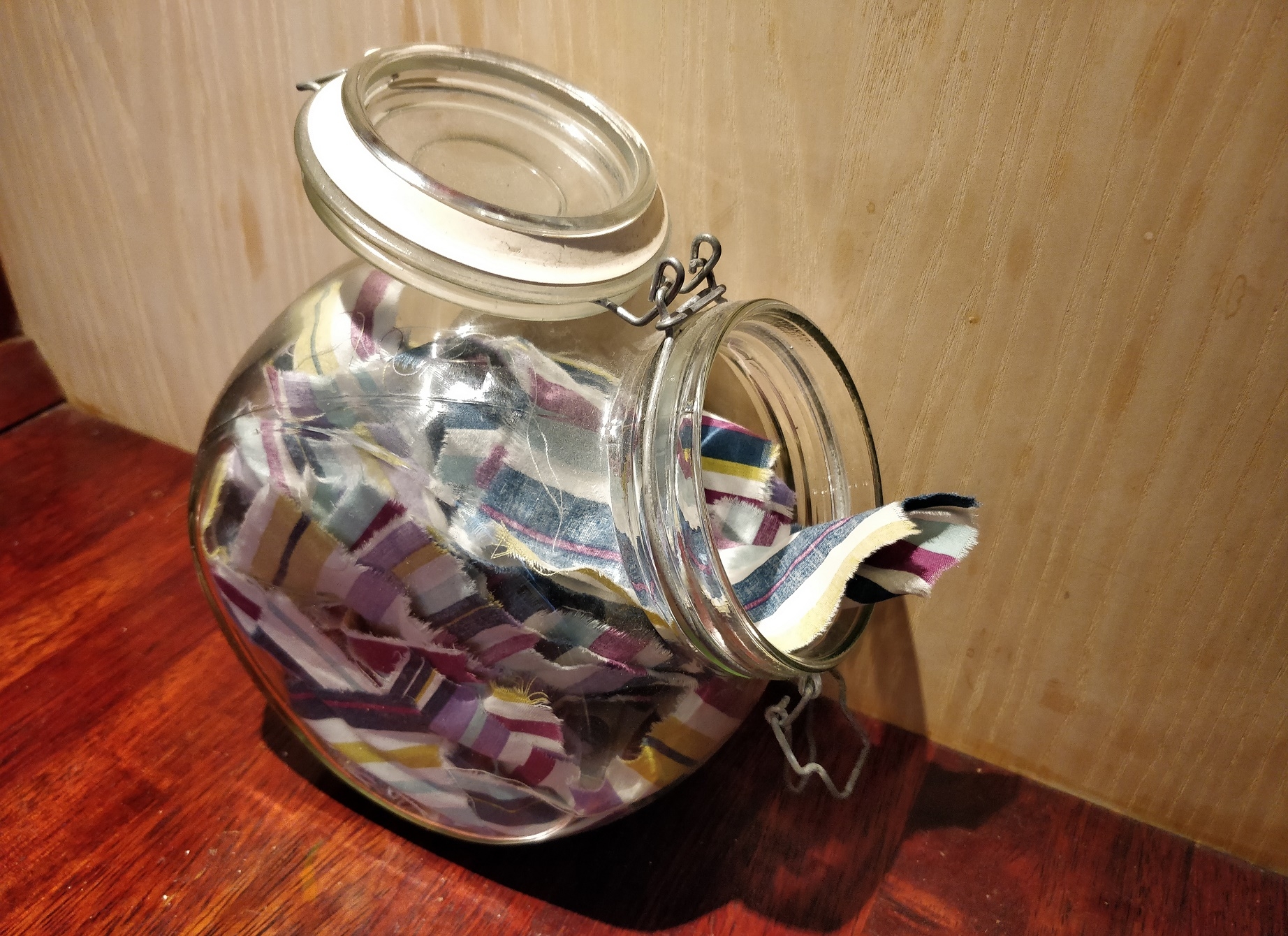 Noget vi også gør i den sektion, er at lave klude af stofrester. Hvis vi har noget tøj eller sengetøj, der er blevet så mørt, at det ikke kan bruges til andet, river vi det i stumper, og bruger til alt fra bleskift til spisetid. Det gør, at vores forbrug af køkkenrulle er nærmest ikke eksisterende, og at hele diskussionen om hvorvidt man skal bruge vådservietter, engangs skumklude eller vaskeklude, der skal vaskes, er totalt overflødig. Jeg er klar over, at det ikke er det største og dyreste felt, men det løber jo op, når der bliver brugt så mange klude hver dag. Og egentlig glæder det mig, at det samtidigt begrænser mængden af kemi i vores hverdag. Vi bruger stadig vådservietter når vi er på farten, hvor vi ikke har adgang til vand, men ikke rigtigt herhjemme.
