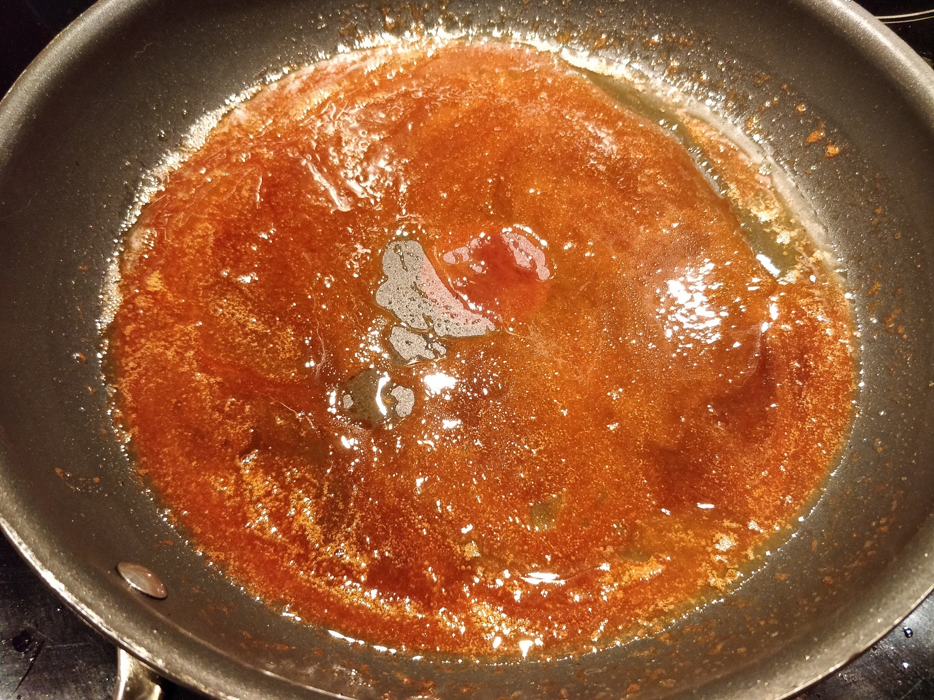 Hvis karamellen bliver ved med at være for flydende, og ikke vil sætte sig på kartoflerne, kan det være fordi, der er kommet lidt for meget smør i. Det er der ikke så meget at gøre ved, men det hjælper som regel, når brunkartoflerne får lov at køle lidt.