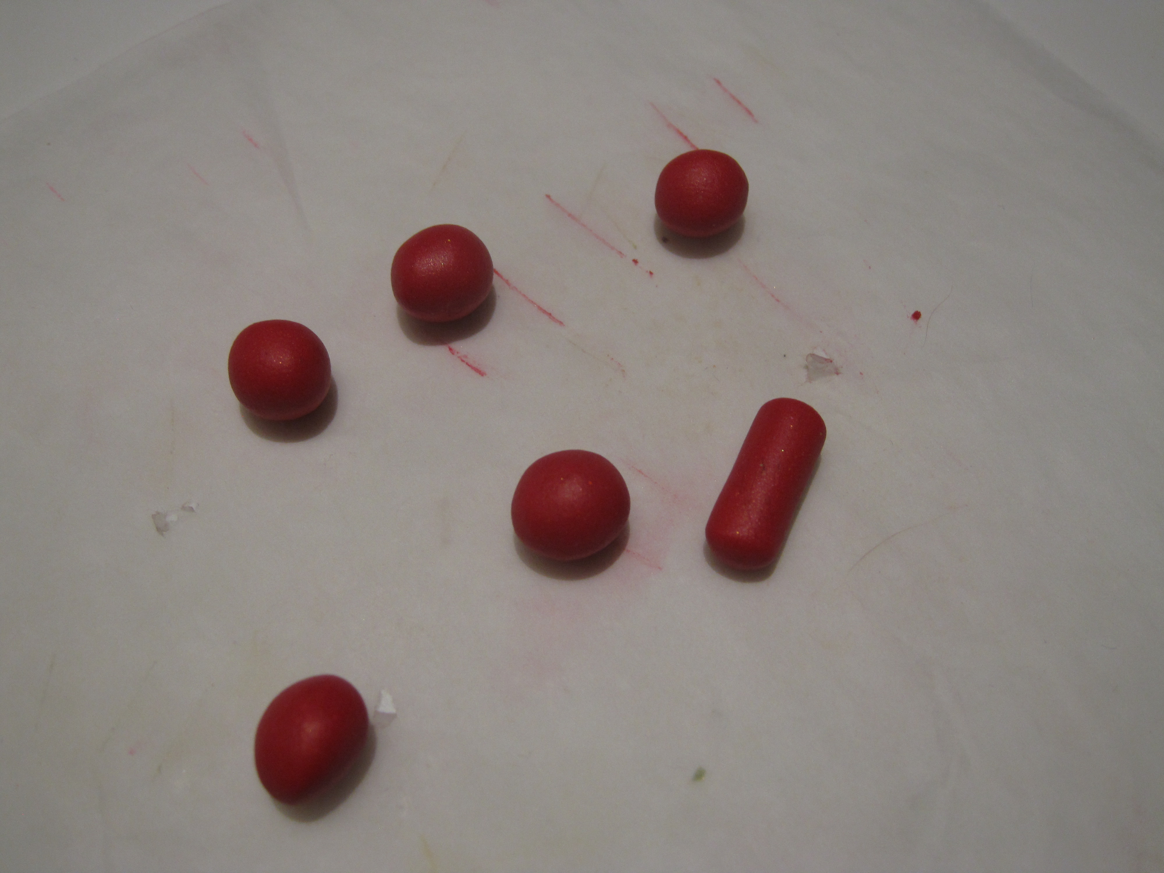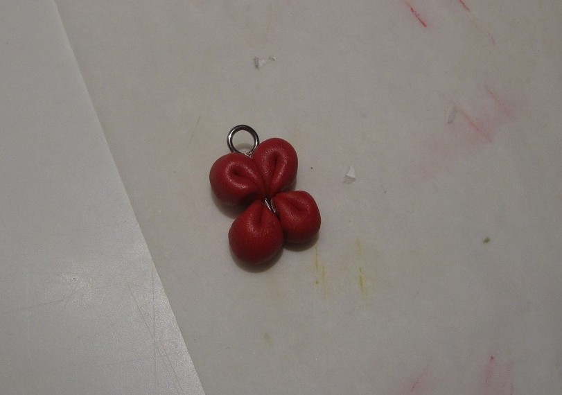 Til en blomst skal man bruge en lille klump ler, (Fimo, Cernit el. – Det er gør ikke den store forskel) i ønsket farve og størrelse. Vil man lave blomster til et par øreringe, er det selvfølgelig nødvendigt at lave to klumper, der er ens i størrelsen. Klumperne deles i det antal stykker, som blomsten skal have blade. Vil man lave en blomst med 4 blade, skal man altså dele klumpen i 4 lige store stykker.