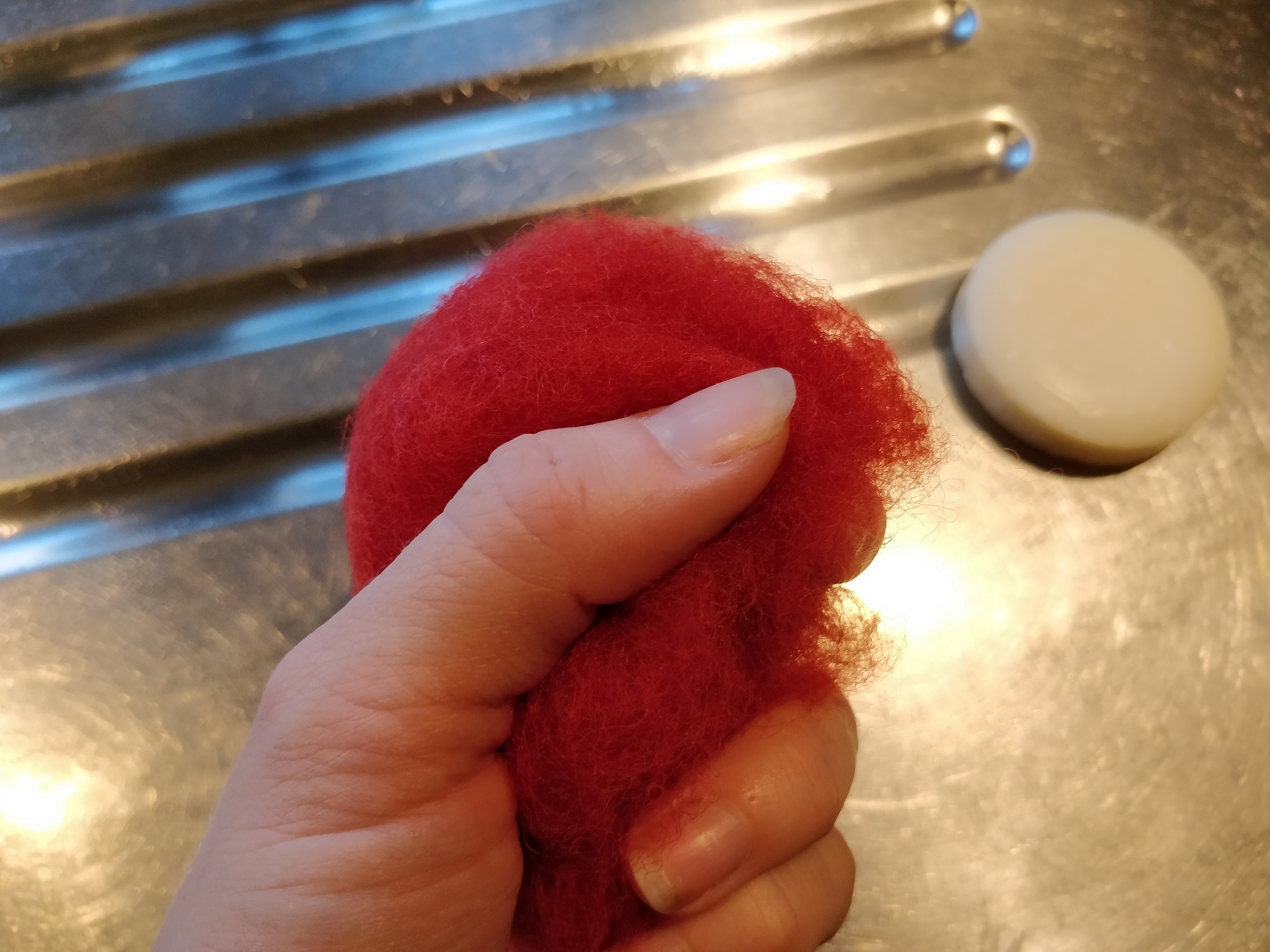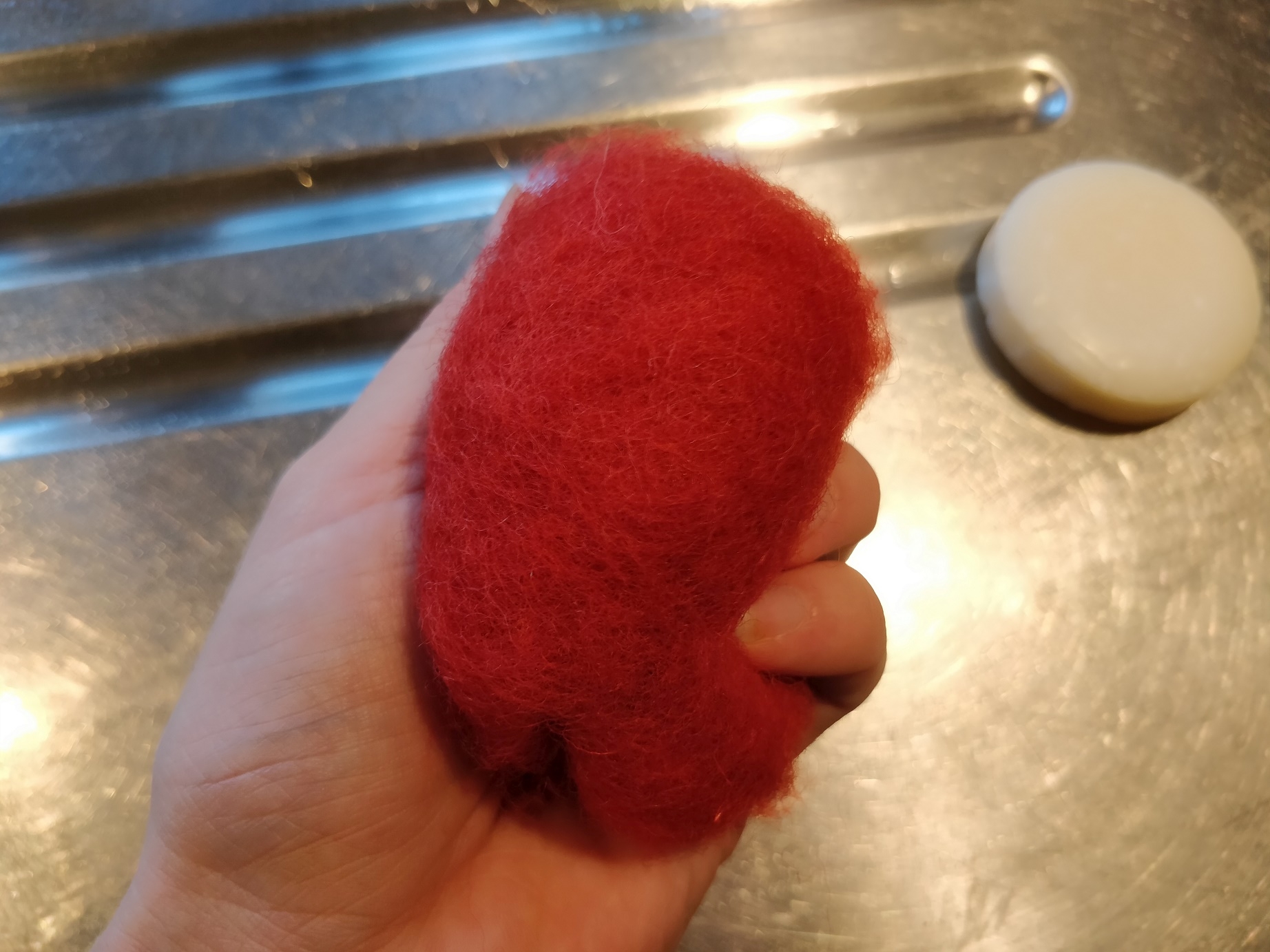 Man skal selvfølgelig også bruge noget uld til at filte med. Det er der ikke de store krav til, og farven kan man helt selv bestemme. Derudover har man brug for noget sæbe. Bare et eller andet mildt. Om det er flydende eller en blok, gør ikke den store forskel.