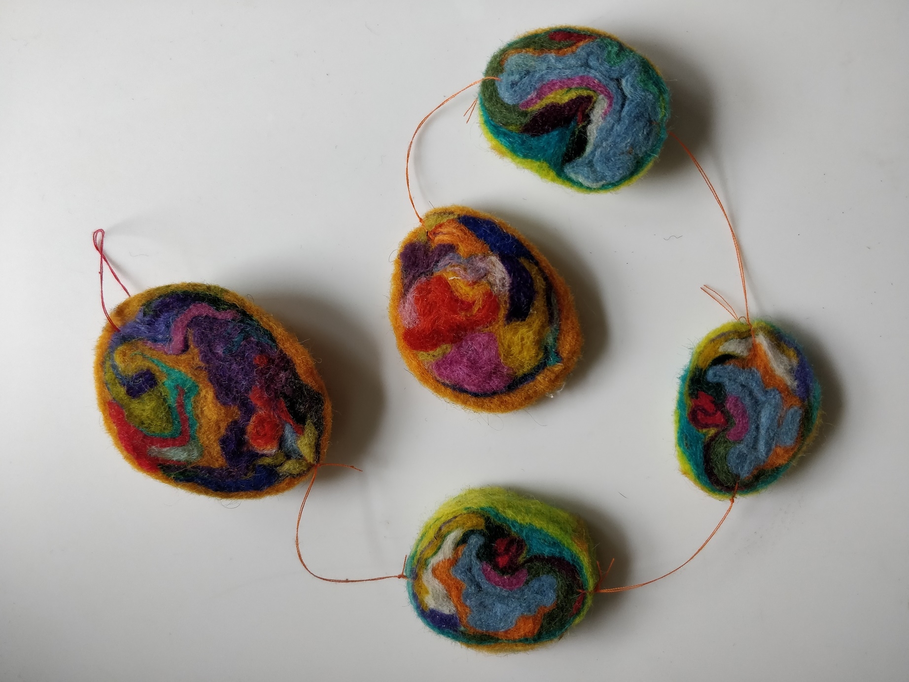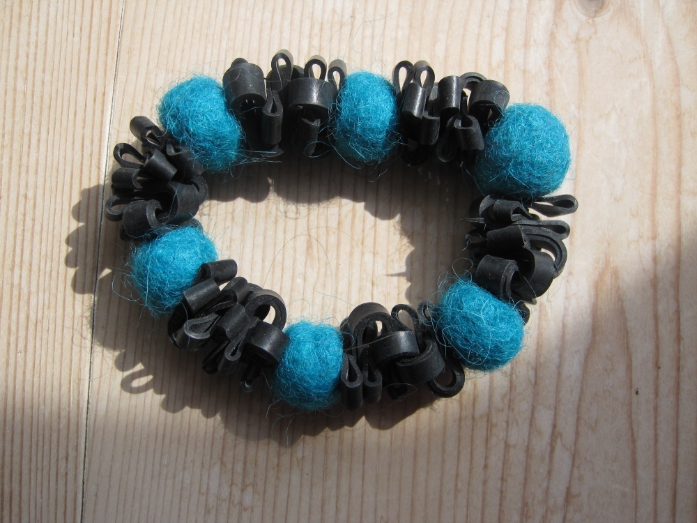 Filtbolde kan bruges til ret mange ting! Jeg har f.eks. filtet mine egne, gode jonglørbolde med sten eller golfbolde i. Og jeg har lavet smykker. Både armbånd og øreringe.