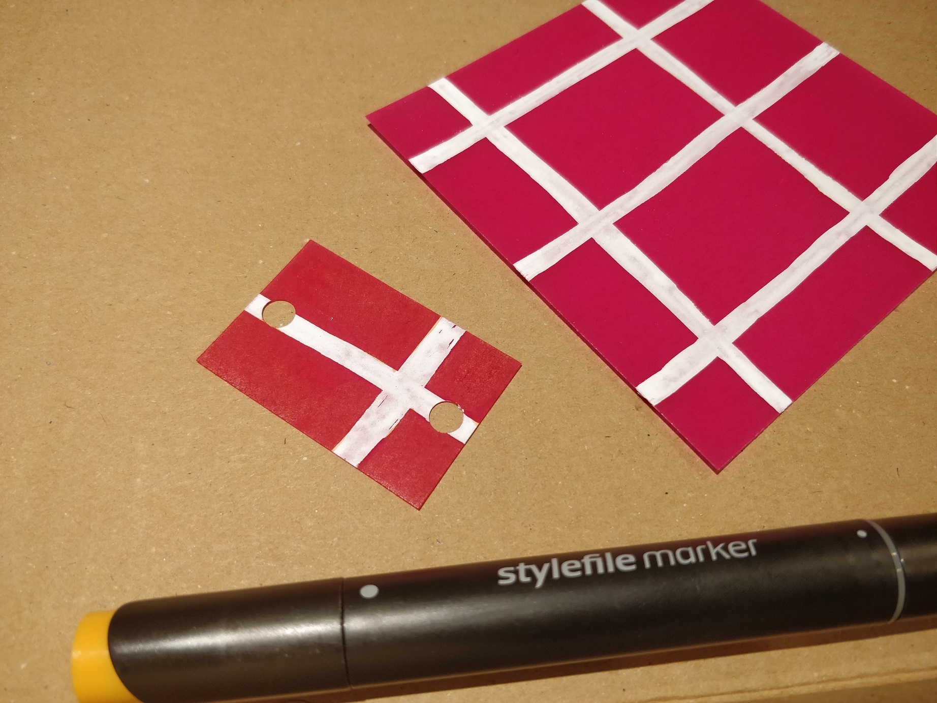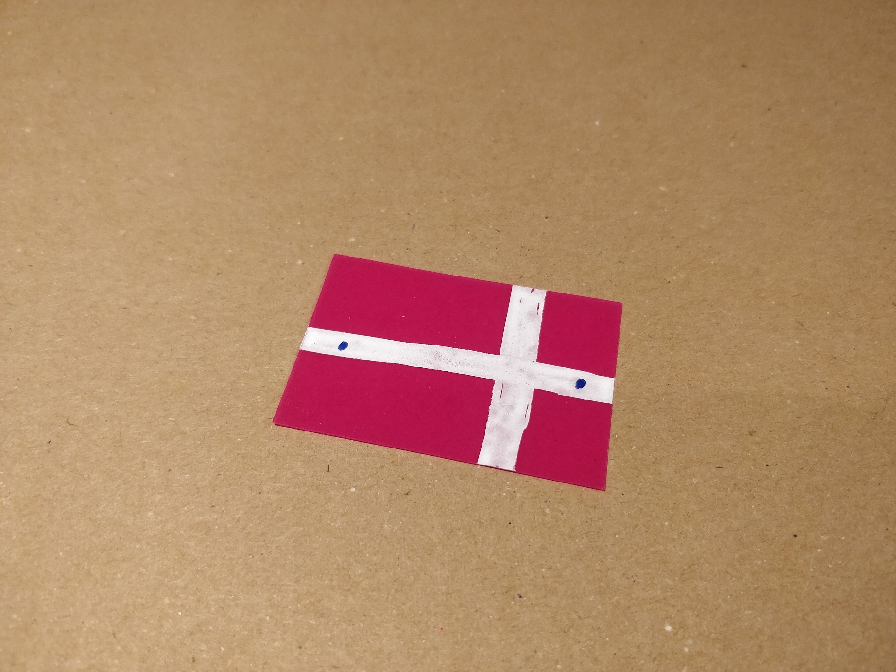 Jeg har brugt Posca og Stylefile markers til at farve mine flag. Og jeg havde ikke noget rødt krympeplast, men jeg havde en masse pink, jeg ikke lige vidste, hvad jeg ellers skulle bruge til, men det gik også. Jeg farvede det med en gul Stylefile tusch også blev det fint rødt.