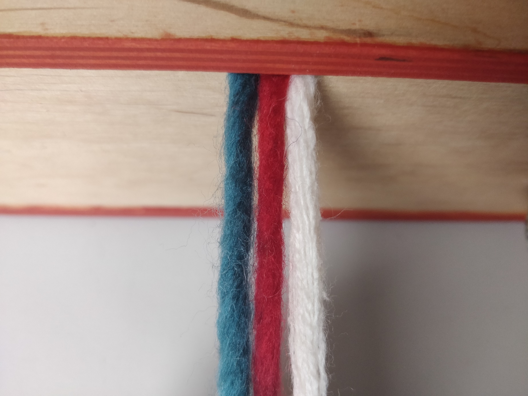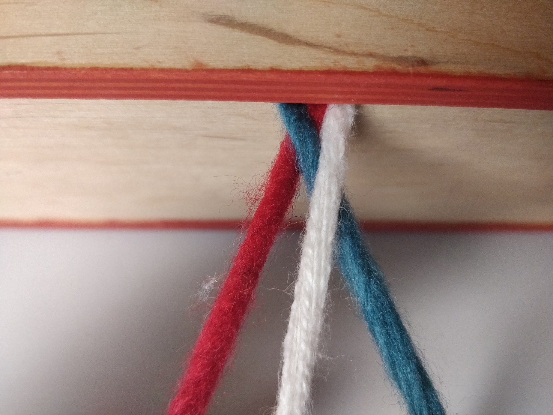 Her har jeg valgt at flette i tre forskellige farver, så man nemt kan se, hvad der foregår.