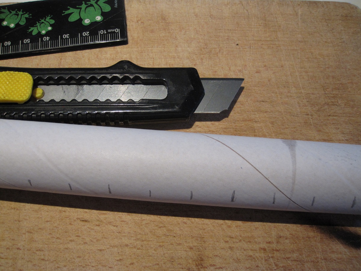 Man starter med at markere på et rør, hvilke størrelser ens små æsker skal have. Herefter skæres røret i skiver med en hobbykniv. Kan hobbykniven ikke klare det, kan man også save dem med en lille sav. Gerne en nedstryger. Og husk nu at passe på fingrene. 🙂
