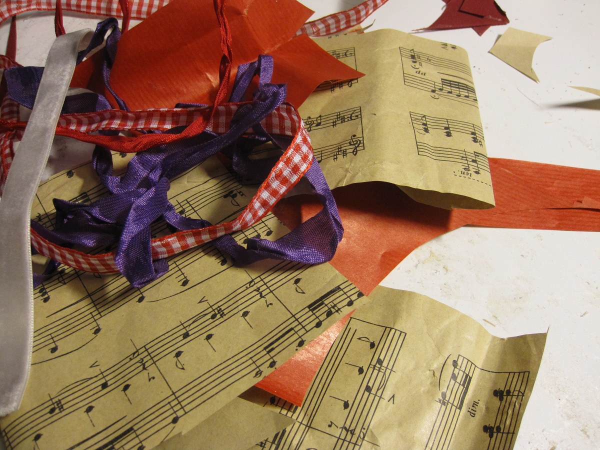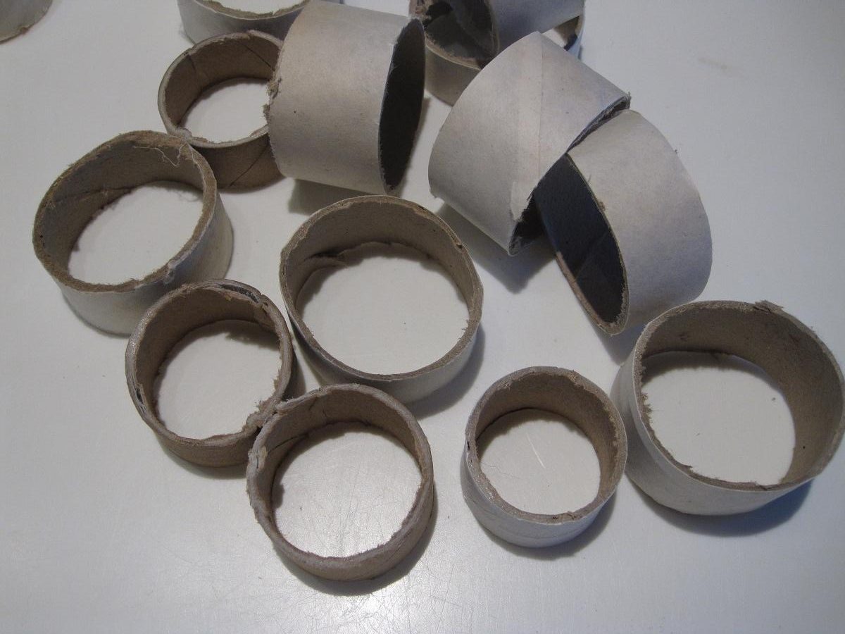 Når det er på plads, og man har skåret de stumper rør, man skal bruge, begynder man blot at beklæde dem med gavepapir, stof eller hvad man vil have på.