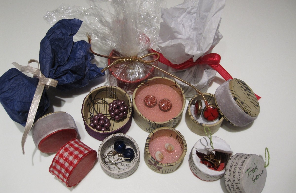 Julegaverne herover, er dog hverken til pakkeleg eller til nogen andre, faktisk. Det er nemlig lidt nogle snydegaver, jeg har lavet, og de er altså kun til pynt. Men apropos gaver, er noget andet, man jo har brug for, i julen, den rette indpakning. Det har jeg også, et par idéer til. Jeg har nemlig både lavet små gaveæsker og små gaveposer. Begge dele, er ganske velegnede, hvis man skal give et smykke, eller lignende, i gave…
