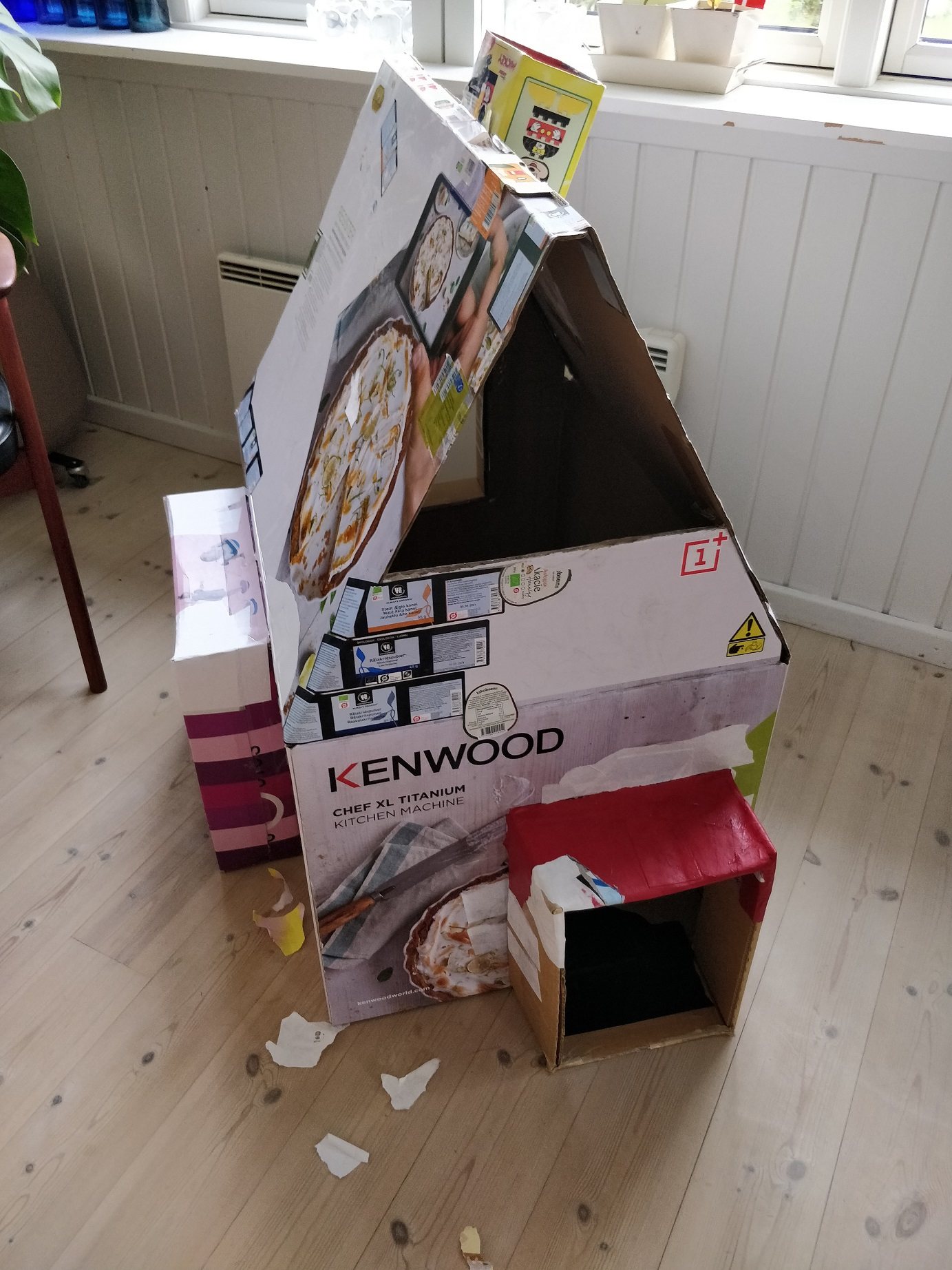 Og man tror det er løgn, for det er et paphus, ikke? Men jeg har bygget det solidt! Og der bliver altså kravlet flittigt på det stadig! 😀