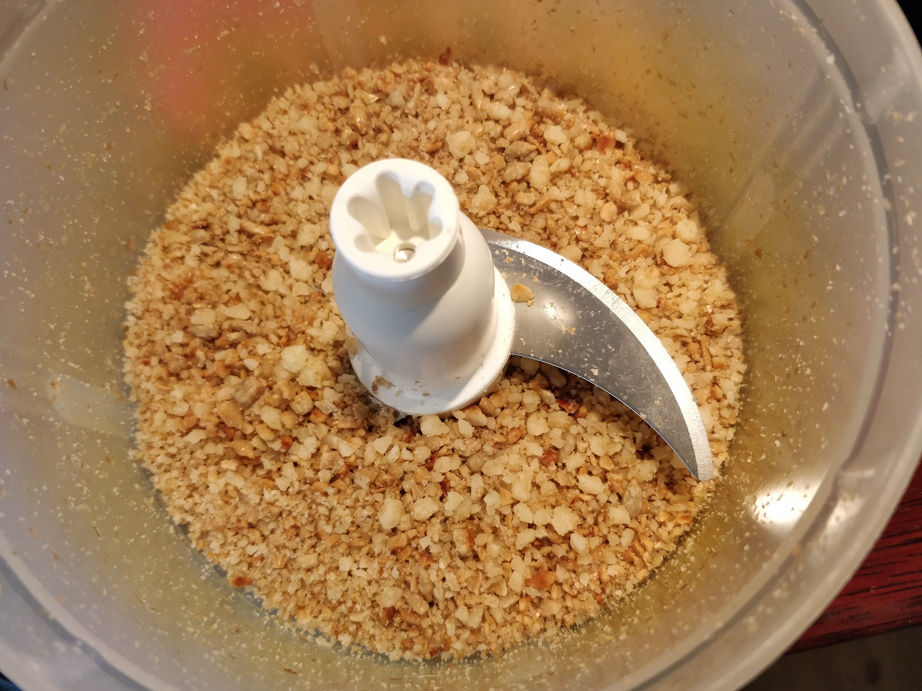 Jeg starter med at blende mine kerner eller nødder sammen med osten, så jeg er sikker på, at det er findelt, og det dufter allerede helt VILDT!