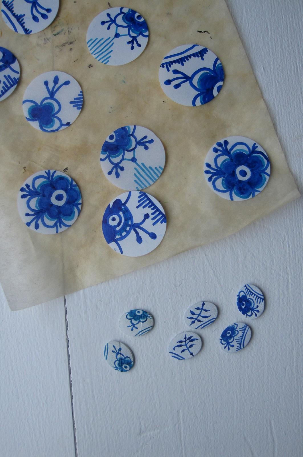 De små blomster og stjerner, man kan se på billedet herunder, er klippet ud med stansejern. Dem er jeg ret vilde med til små ting, f.eks til ørestikker.