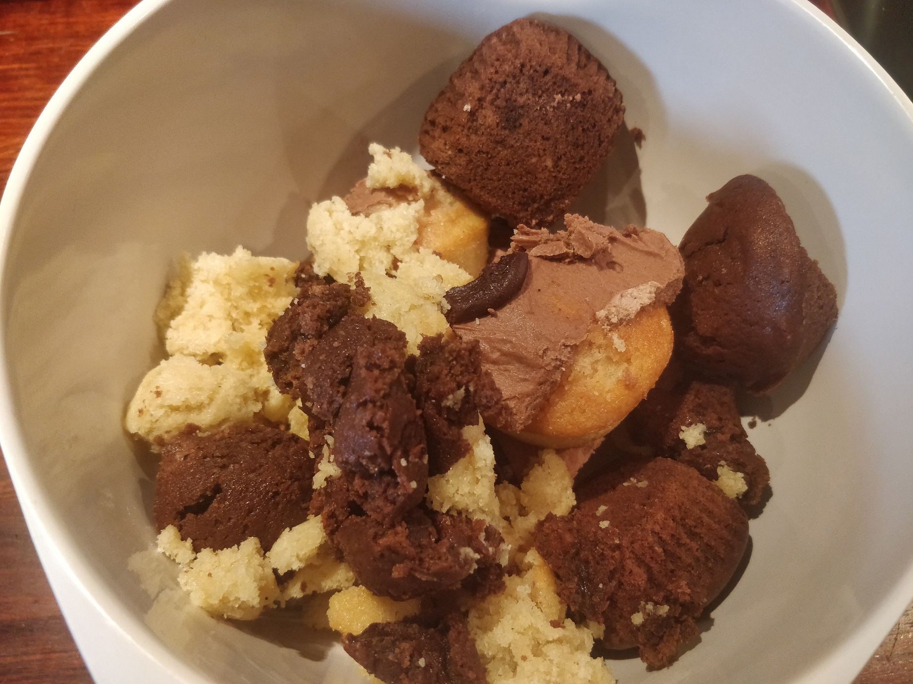 Til den her portion havde jeg ca. 700g blandede kagerester, primært muffins, lidt drømmekage, både med og uden kakao og der var frosting på noget af det. Det kom med det hele!