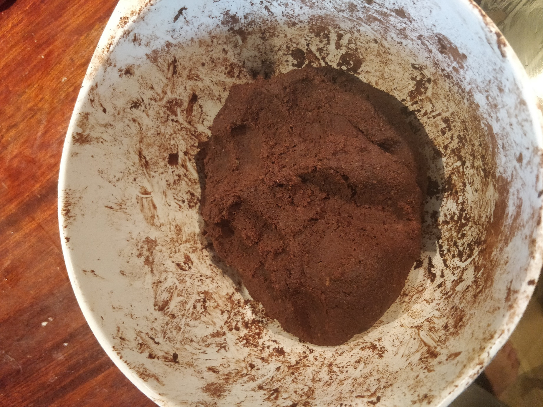 Først smuldrer man kagen rimelig fint, og så begynder man at tilføje de andre ingredienser og ælte det sammen. Man kan ælte med hænderne, bruge en stor ske, eller måske røre det på en røremaskine, hvis man har en meget stor portion!