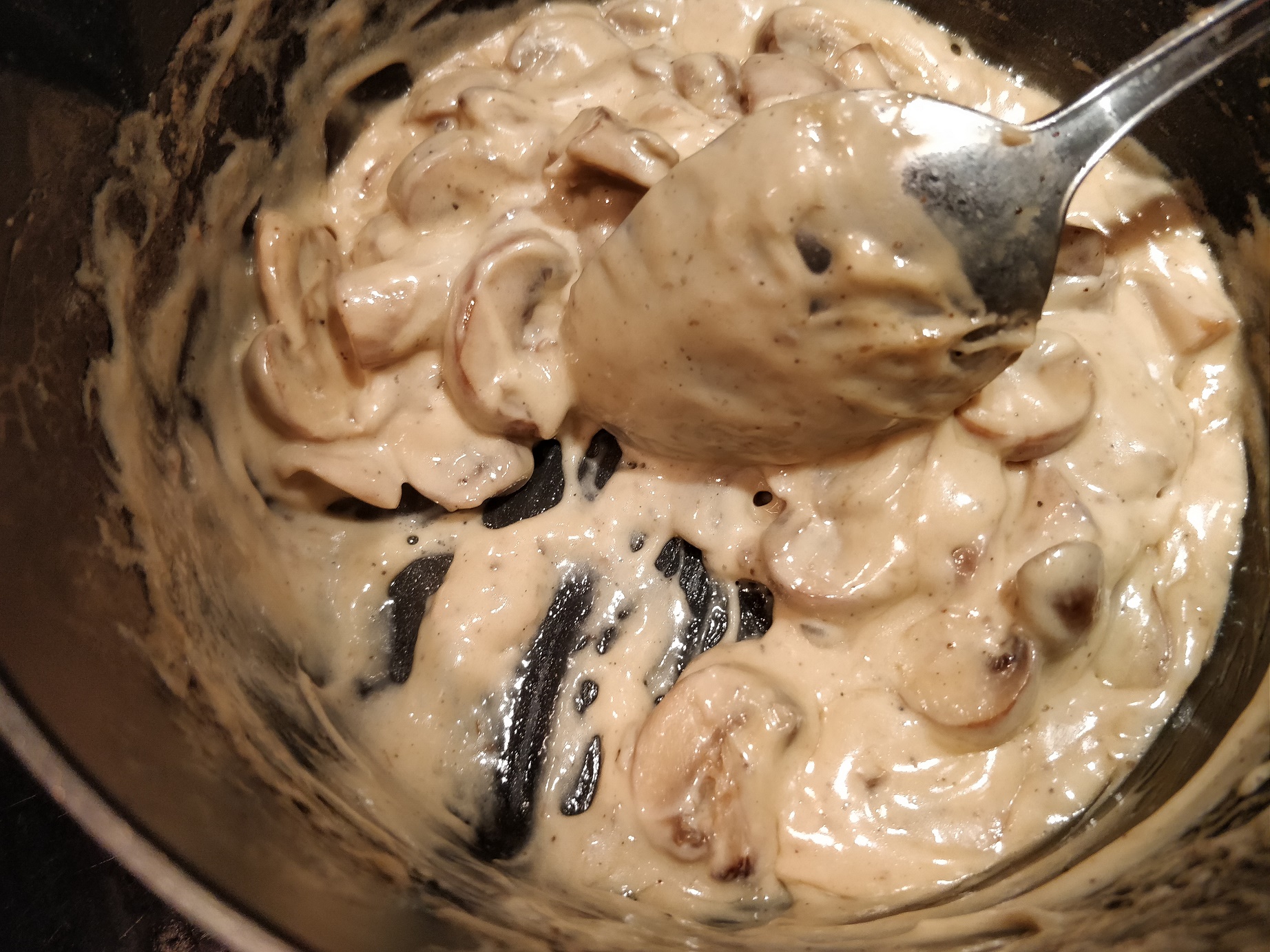 Champignonerne eller svampene renses først, og skæres i grove skiver. Så kommer man dem i en gryde, sammen med fløden, som bringes i kog. Her skal det simre indtil fløden er kogt helt ind, og er blevet lækker og cremet. Det kan godt tage et stykke tid, men så er der også bare tilbage at smage til med citronsaft, (så det ikke bare er fed fløde) salt og peber, og selvfølgelig riste et stykke godt brød at servere det på. I dette tilfælde et hjemmebagt grydebrød. 🙂