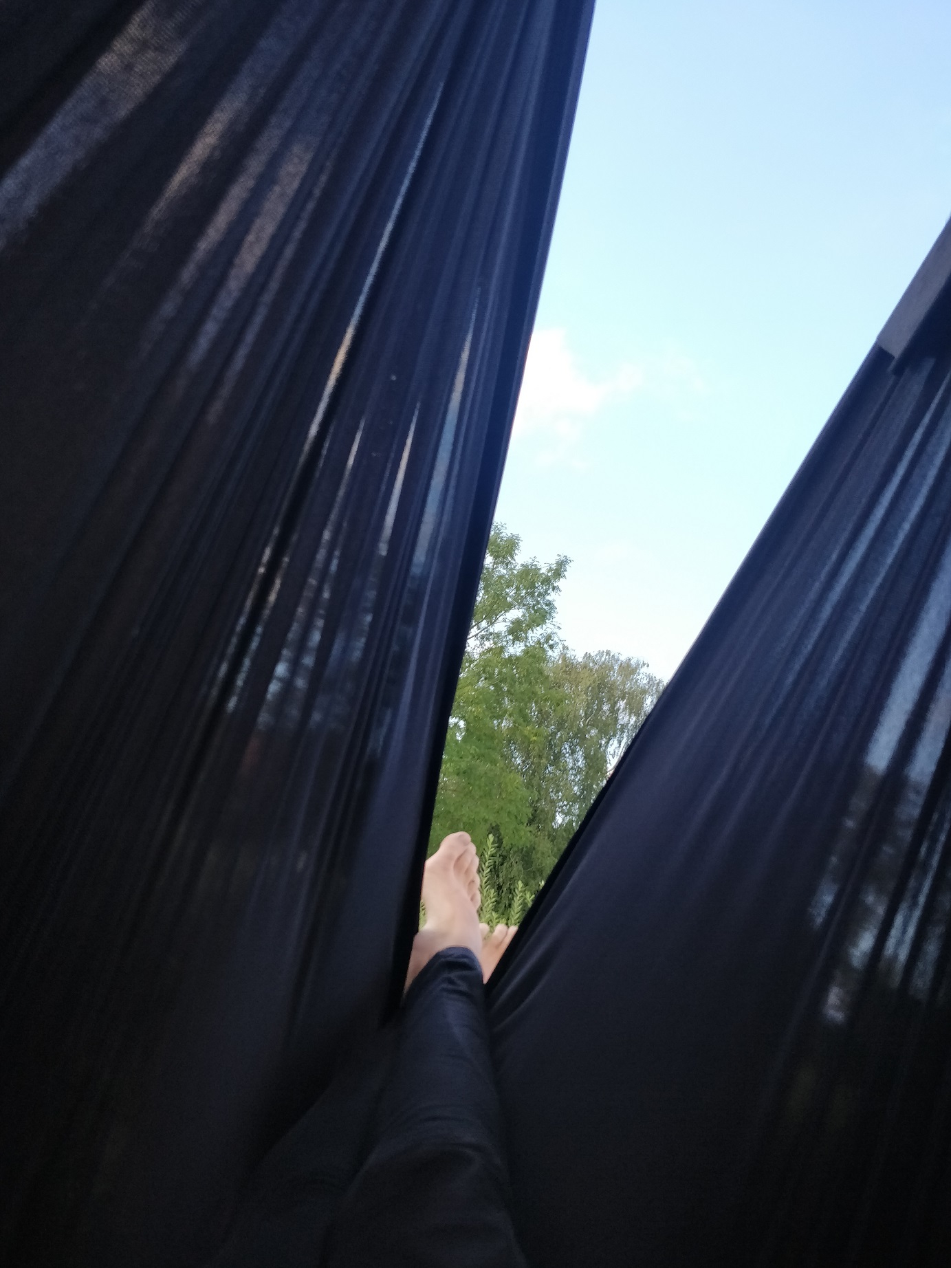 Jeg har købt en sort yoga hængekøje derfra, og er rigtig glad for den! Hvis jeg skal give en helt hurtig anmeldelse, vil jeg sige, at den er alle pengene værd. Den har nogle fordele i forhold til mere afstressende yoga, i og med at man kan sidde og ligge i den. Og som en investering til mere af familien end bare mig selv, vil jeg sige, at der er mange timers børne-underholdning, motorisk træning og afslapning i også! Den svøber sig godt tæt til kroppen og man kan ligge helt tæt pakket i den. Gynge, snurre osv. Thor er rigtig glad for den og vi har brugt den på forskellige måder siden han var helt lille. Vi har også “trænet” i den sammen! F.eks ved at jeg har ligget på gulvet, med benene oppe i selen, i en omvendt planke, også har Thor brugt mig som rampe til at kravle op i hængekøjen. ? Om sommeren hænger jeg den op i vores gyngestativ udenfor. 🙂